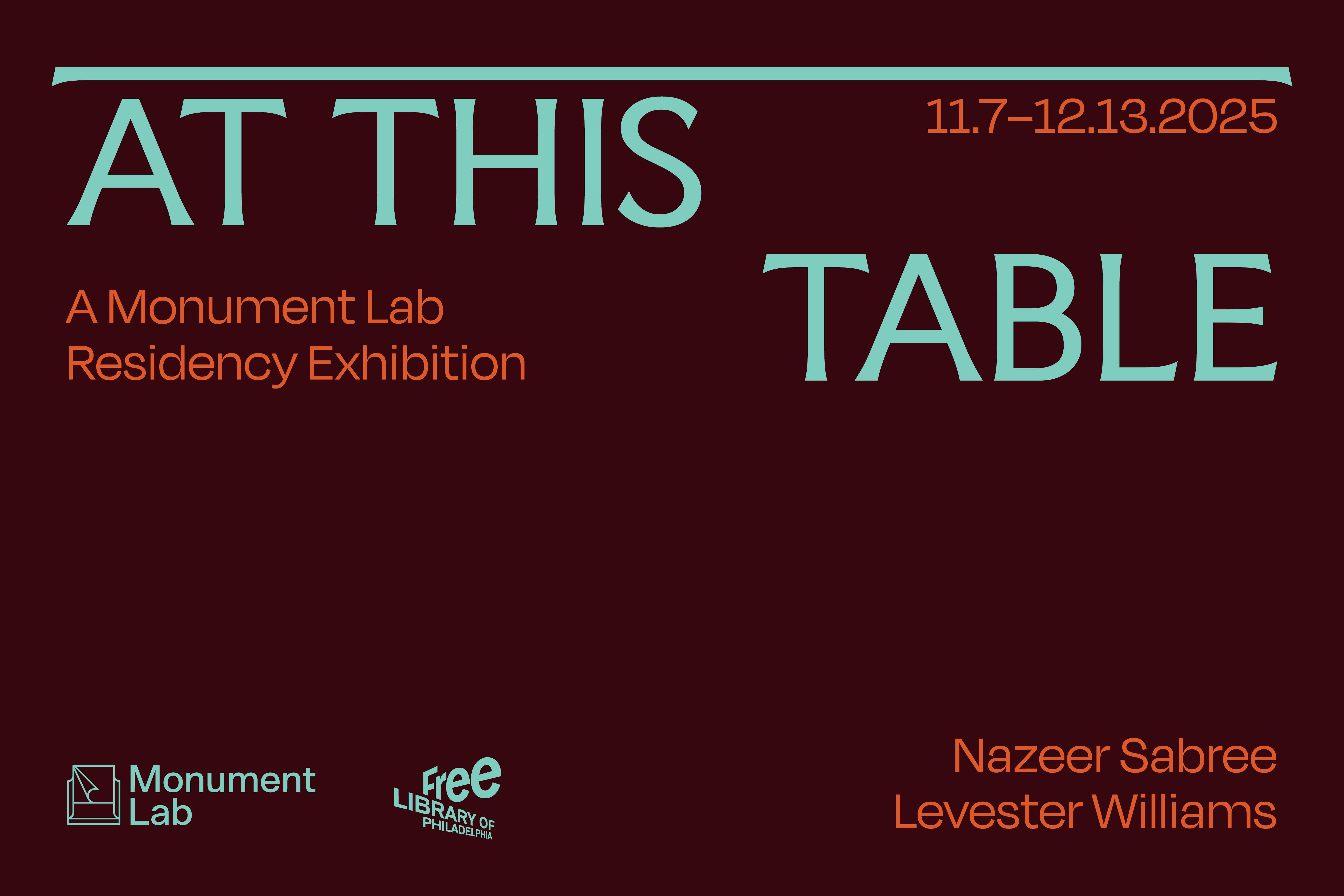 Join Monument Lab for the opening of At This Table on November 7th, 5:30pm EST at Heim Center for Cultural and Civic Engagement at the Parkway Central Library.
